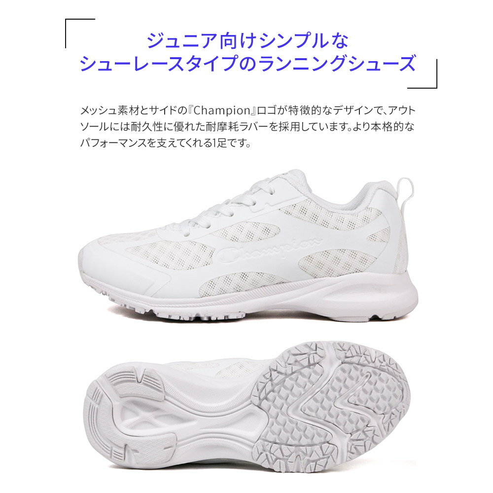 メッシュ素材とサイドの『Champion』ロゴが特徴的なデザインで、 アウトソールには耐久性に優れた耐摩耗ラバーを採用しています。