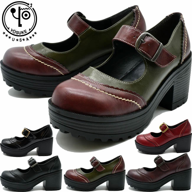 【クーポン対象】 YOSUKE yosuke ヨースケ 厚底 リボン付きヒール厚底パンプス 靴