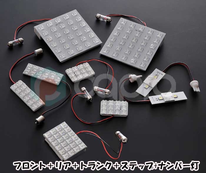 LEDルームランプ--フロントマップ部x2 セカンドルームランプx2 スライドドアステップランプx2 トランク天井x1 ナンバー灯x2