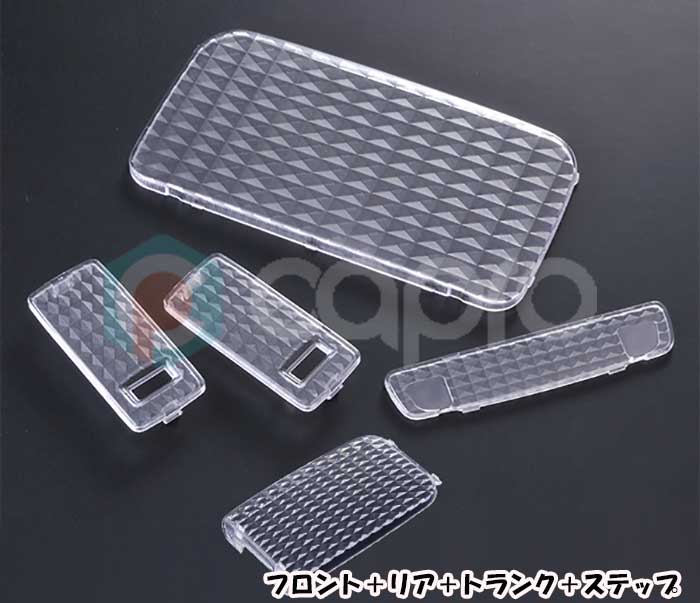 セット内容:レンズ--フロントマップランプ部x1枚、セカンドルームランプ部x1枚、スライドドアステップ部左右x1枚ずつ。